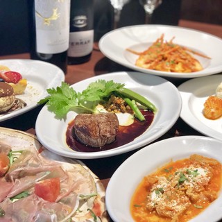 季節の食材を織り混ぜたフルコースやお食事内容が選べるコースもご用意しております。宴会やパーティーなど大人数での個室や間仕切りもご相談ください。