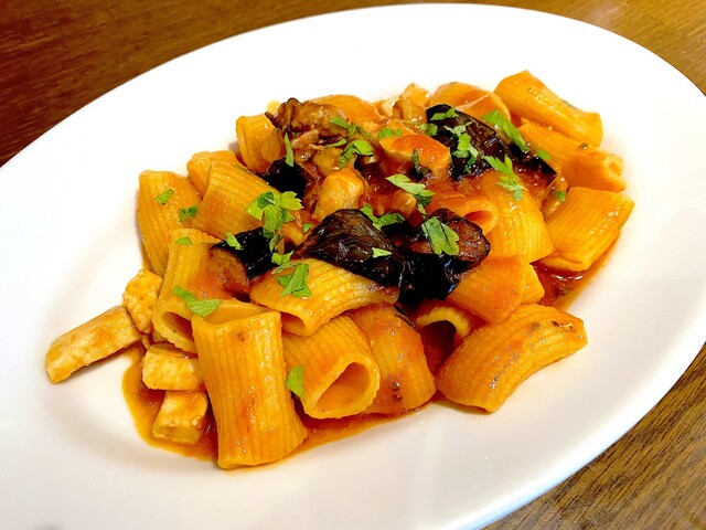 自家製リガトーニ カジキと茄子のシチリア風