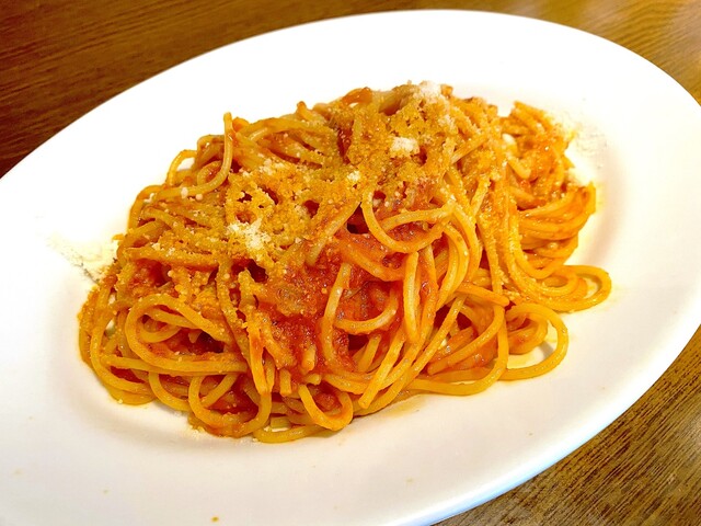 スパゲッティー グラナパダーノチーズのアラビアータ
