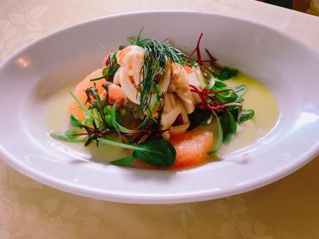 お任魚介のマリネ グレープフルーツとフィノッキオ添え